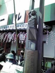 「はなしがみ(話神)」 この神様は、古くから話芸にいそしみ、 さまざまな話芸の間を心得ている神様です。 この神様が舞台にあがり見守ってくれていると、 落語や漫才などの舞台が明るく盛り上がり、 芸人達の失敗さえも笑いに変えてくれるそうです。 浅草演芸場へ何度も行ってましたが、始めて見ました。 8時半の出がけに虹を見ましたので、何かしらの期待感を持っていました。 11時開場ですが、休日なので混むだろうと予測し、早めの10時半に到着。 案の定、もう40人位の行列です。丁度、並んだ目の前に見えたわけです。 座布団6枚に座り、扇子を頭にあてている愛くるしい、ほっとする姿でした。 失敗も お笑いにする 話芸の間 |