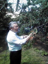 実は、こだますいかのブランドのひとつ 「初夏の輝き」、「うまいもんどころ」 などいろいろなキャッチコピー 今日、出荷するスイカは、3月の初旬に交配したもので、 交配後、55日前後にもぎるとのこと。 一番果は、午前中に手で交配し、 2番果の交配は、みつばちを使うそうです 4月17日の積雪、長引く日照不足など天候不順で出来が悪く、 自信もって出荷できるものが、昨年比で7割とか 少し、元気のない声、ため息がもれていました。 いつもならば、スイカの糖度が高く、手のひらがベタベタするのですが、 スイカの味はするが、甘みはいまひとつ・・・・・。 作る人、食べる方もさみしーい限り。 同じ家で、もうひとつのひとりじめ |