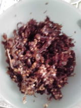 鬼おろしで大根と人参をすりおろす すりおろすのに以外と力が要ります |