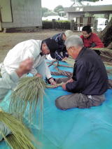 町内の神明宮の秋祭りが執り行われ、神事に参列しました。 地元の長老達は、この秋祭りを「おひまち」とも言います。 しかし、長老達もその漢字、言葉の意味について解らないとのことで、 早速、今日神主さんに尋ねました。 「お日待」と書くそうです。 11/23の秋の例大祭(新嘗祭)の準備をし、例大祭の日を待つお祭りとか。 教えることと伝えることの大切さをお忘れなく。 準備のひとつとして、「しめ縄」づくりと「弊束」の各戸配布をします。 旧暦の9の日(9/9、9/19、9/29)に氏神様などに「しめ縄」を取付けます。 因みに、今年は10/24、11/5、11/14がその日にあたります いつもは、太鼓をたたいてから神事が始まるのに、今日は太鼓がならなかった。 多分、祭りの準備では、神様を呼ぶ必要がないからか?と一人合点しましたが・・・・・。 稲より長めの「しめ縄」専用の藁の青臭さをかきながら 1本づつ右にねじり、2本合わせるときには左ねじり 途中、藁を差し込みながら太くします。 3本目をからめて巻き込み仕上がりです。 毎年、「しめ縄」づくりにチャレンジしてみますが、いまだにままなりません。 神事、「しめ縄」づくり、弊束配りが終わり、 恒例の蕎麦打ちそしてノミニュケーションです。 他県出身の私には、地域の皆さんとの交流、親睦が図れるし 見聞を広めるうえでも良い機会となっています。 役員としての責務はありますが、 地域の皆さん、ありがとうございます。 ![]() |